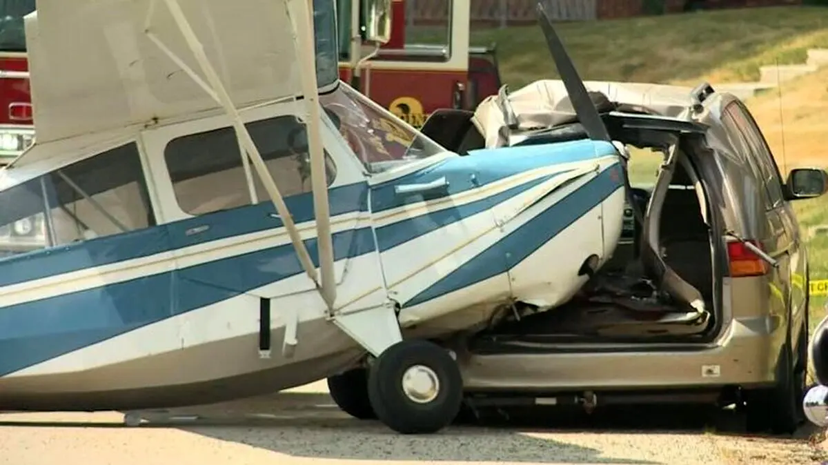 ببینید / لحظه تصادف باورنکردنی یک هواپیمای سبک با خودروی سواری در کنار اتوبان!