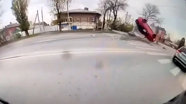 رکنا: خودرو BMW به علت برخورد با جدول کنار خیابان در هوا معلق زد.