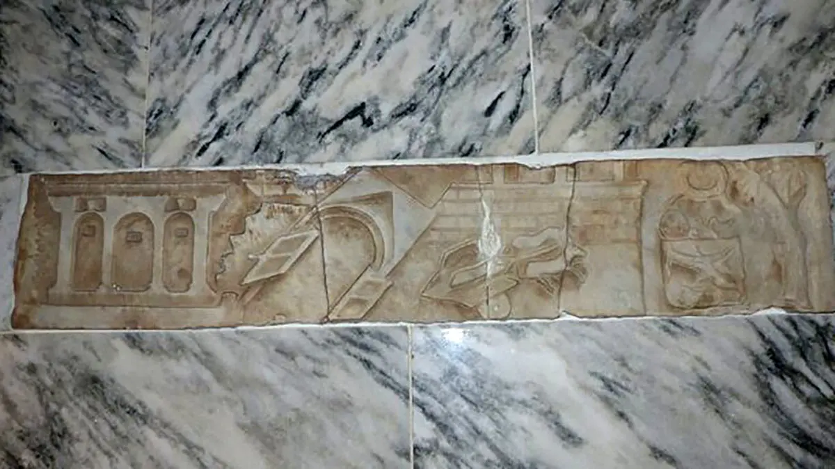 قدمت این تکه مرمر باریک، که روی آن حکاکیهایی وجود دارد، به حوالی ۶۲ میلادی بازمیگردد و روی آن صحنهای از زمینلرزهای به تصویر کشیده شده که در همان سال رخ داده است. نکته قابل توجه درباره نقشهای روی این مرمر، نمایش فروریختن دروازههای «پمپئی» است.