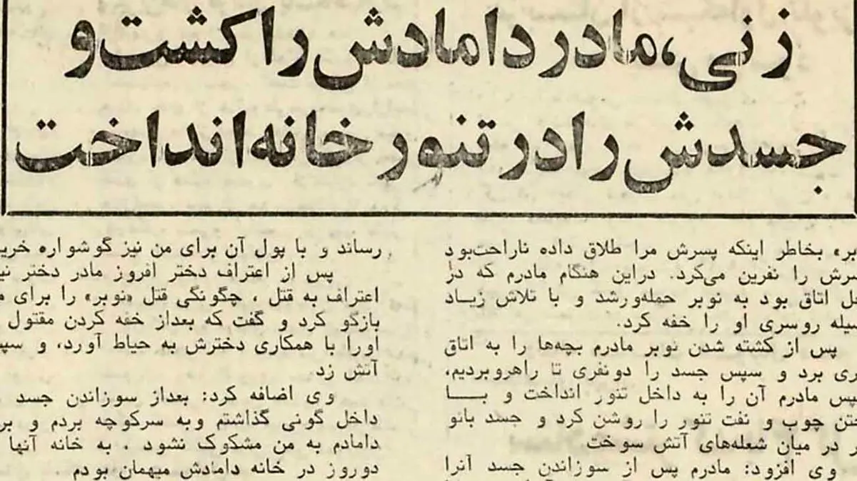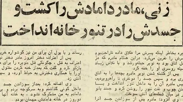 به گزارش رکنا، روزنامه اطلاعات ۲۸ آذر سال ۶۳ در این باره نوشت: زنی که مادر دامادش را به طرز عجیبی کشته و سپس جسدش را به آتش کشیده بود، توسط ماموران آگاهی شهربانی تبریز دستگیر شد.