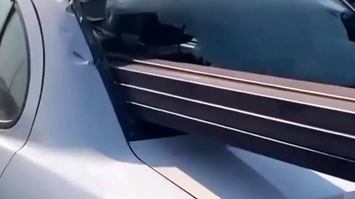 ببینید | فرو رفتن ترسناک پروفیل آهن داخل صندلی خودرو در فاصله چندسانتیمتری سر راننده!