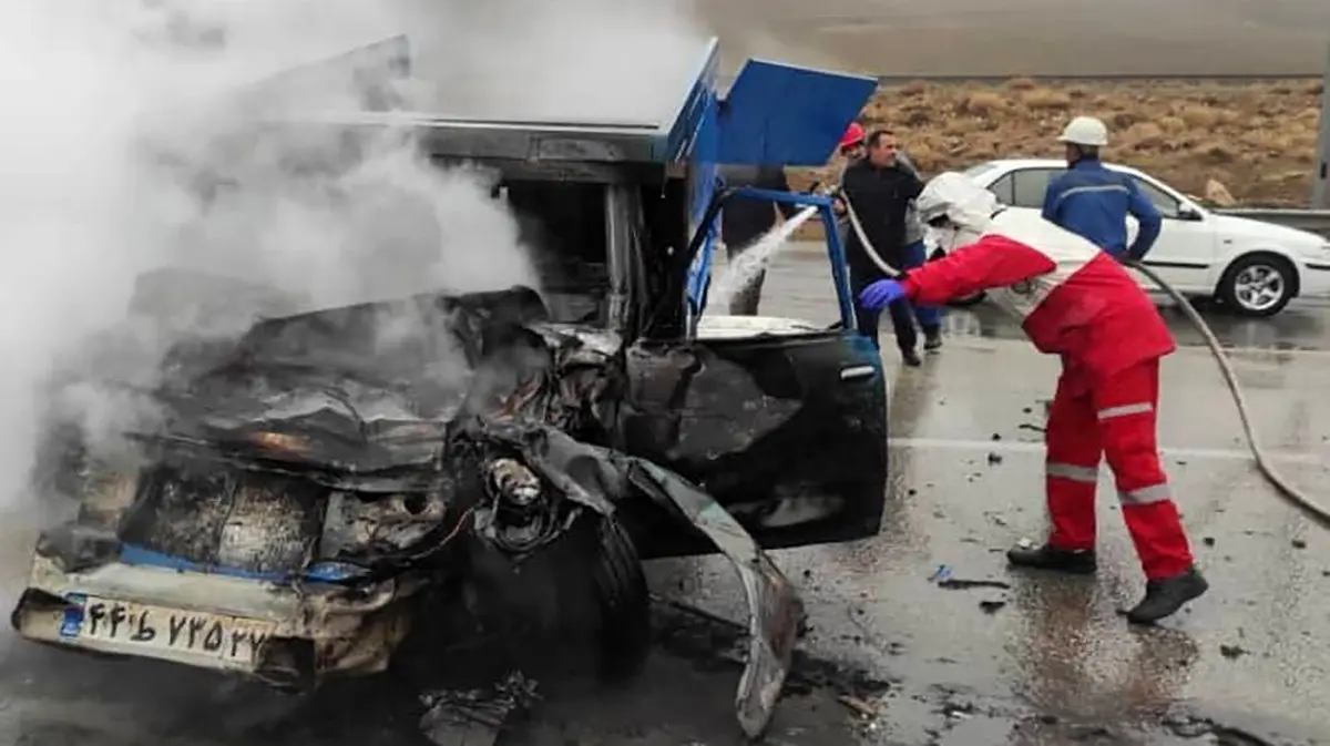 شاخ به شاخ شدن دو خودرو در مشکین شهر / تمامی سرنشینان زنده زنده سوختند
