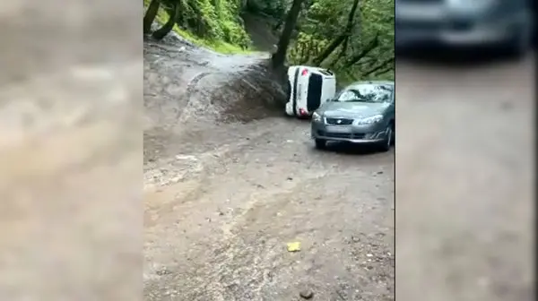 ببینید / لحظه چپ کردن پژو ۲۰۶ در چند متری یک دره!
