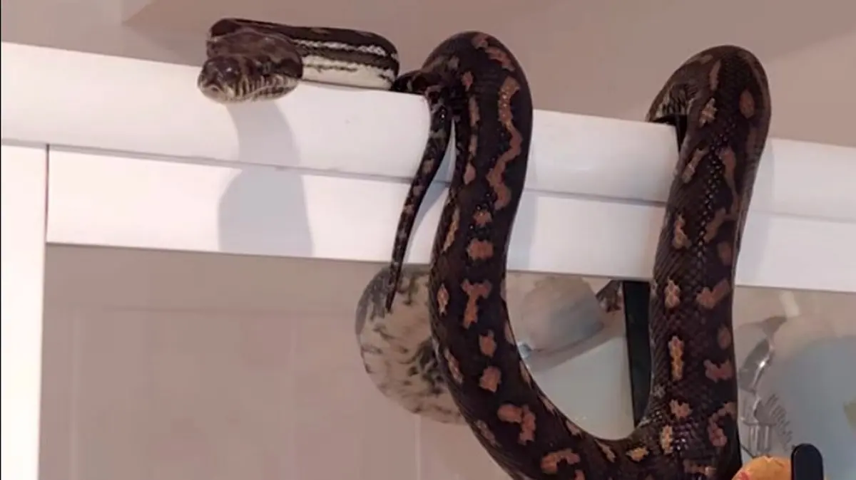 حوادث رکنا: یک مرد استرالیایی در سرویس بهداشتی خانه خود با یک مار پیتون ۳ متری مواجه شد و به شدت ترسید.