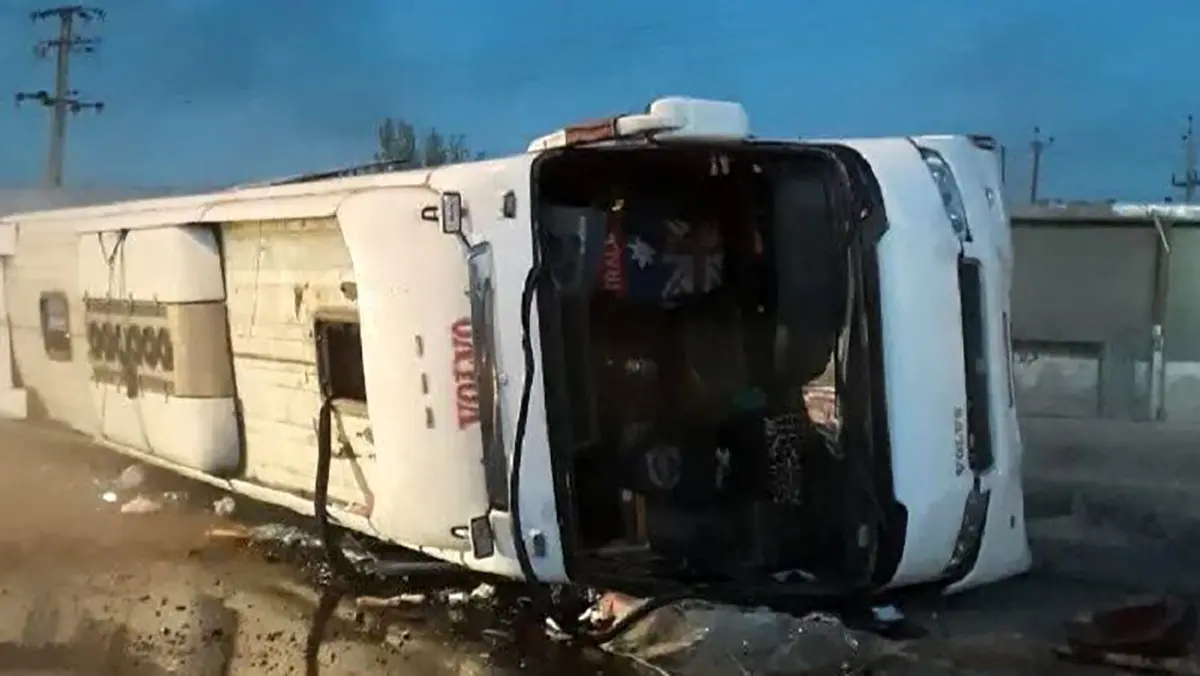 واژگونی وحشتناک اتوبوس در محور تبریز - آذرشهر / ۱۲ زن و مرد به بیمارستان منقل شدند+ فیلم