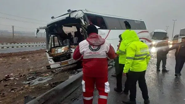 تصادف زنجیره ای اتوبوس مسافربری با چند خودرو در آزادراه قزوین + وضعیت مصدومان