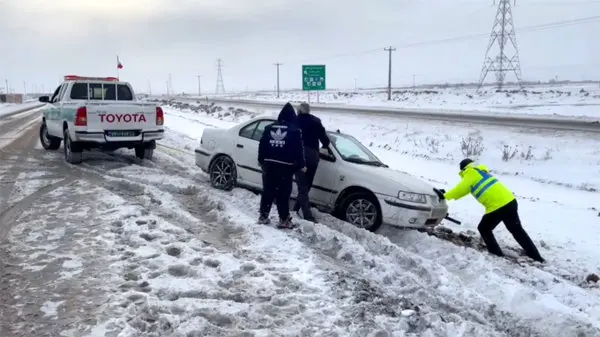 حوادث رکنا: نیرو انتظامی خودرو گرفتار در برف را نجات دادند.
