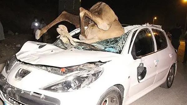 ببینید / تصادف هولناک و تلخ یک خودرو با شترهای در حال عبور از جاده