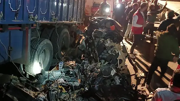 4 عکس وحشتناک از له شدن پژو زیر تریلی 10 تنی در همدان ! / مرگ فجیع 2 نفر !