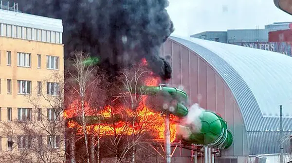 فیلم آتشسوزی هولناک پارک آبی سوئد / 13 نفر سوختند