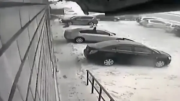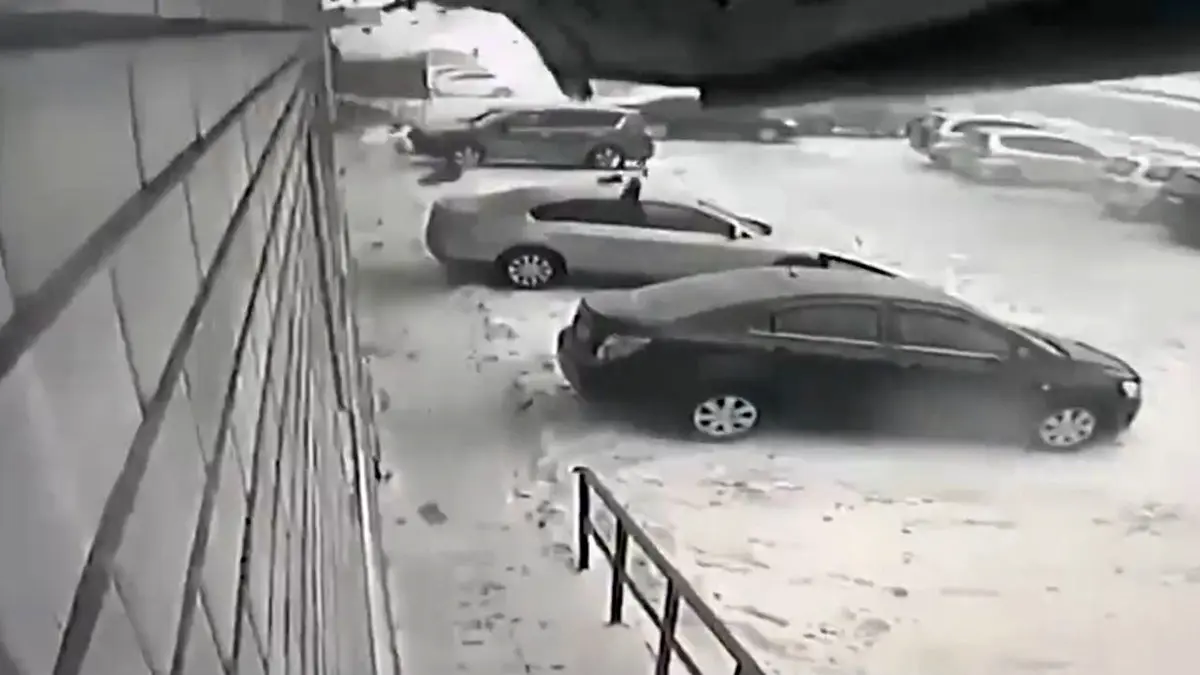 فیلم لحظه ریزش سقف به خاطر برف سنگین روی خودرو ها