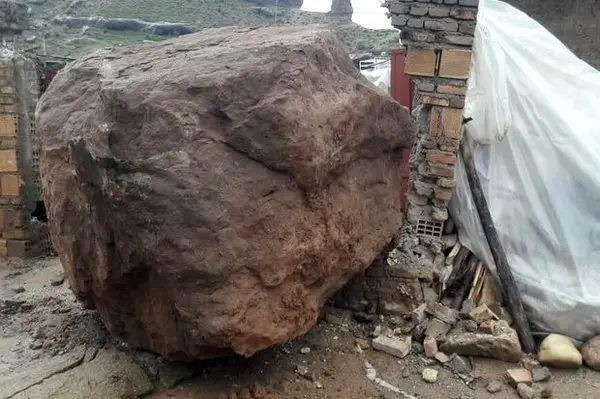 حوادث رکنا: ظاهراً بارشهای شدید چند روز گذشته و فرسایش خاک بالا دست روستا ، عامل لغزش و سقوط سنگ و برخورد آن با سقف منزل مسکونی در پایین دست کوه شده است.