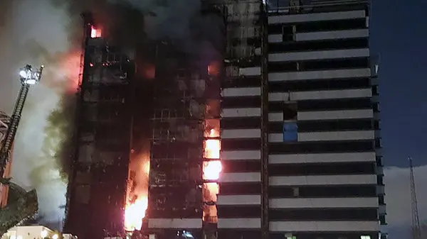 اتصال سیم برق در سقف انبار طبقه ۱۶، منجر به آتش سوزی و گسترش آتش به مواد قابل اشتعال شده است و در نهایت به دلیل سرایت آتش به نمای کامپوزیتی بیمارستان، این حریق گسترش پیدا کرده است.