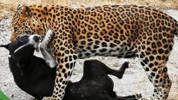 ببینید / لحظه ترسناک حمله پلنگ به سگ در شهر سیسخت مقابل چشم یک شهروند