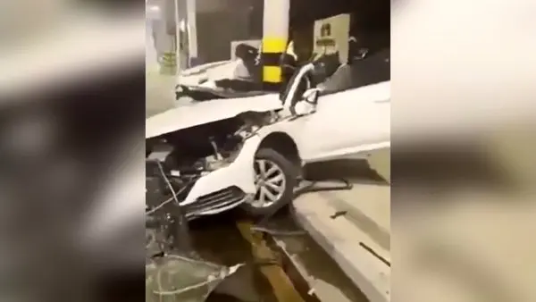 ببینید / متلاشی شدن خودروی سواری بعد از برخورد شدید با تیر چراغ برق!