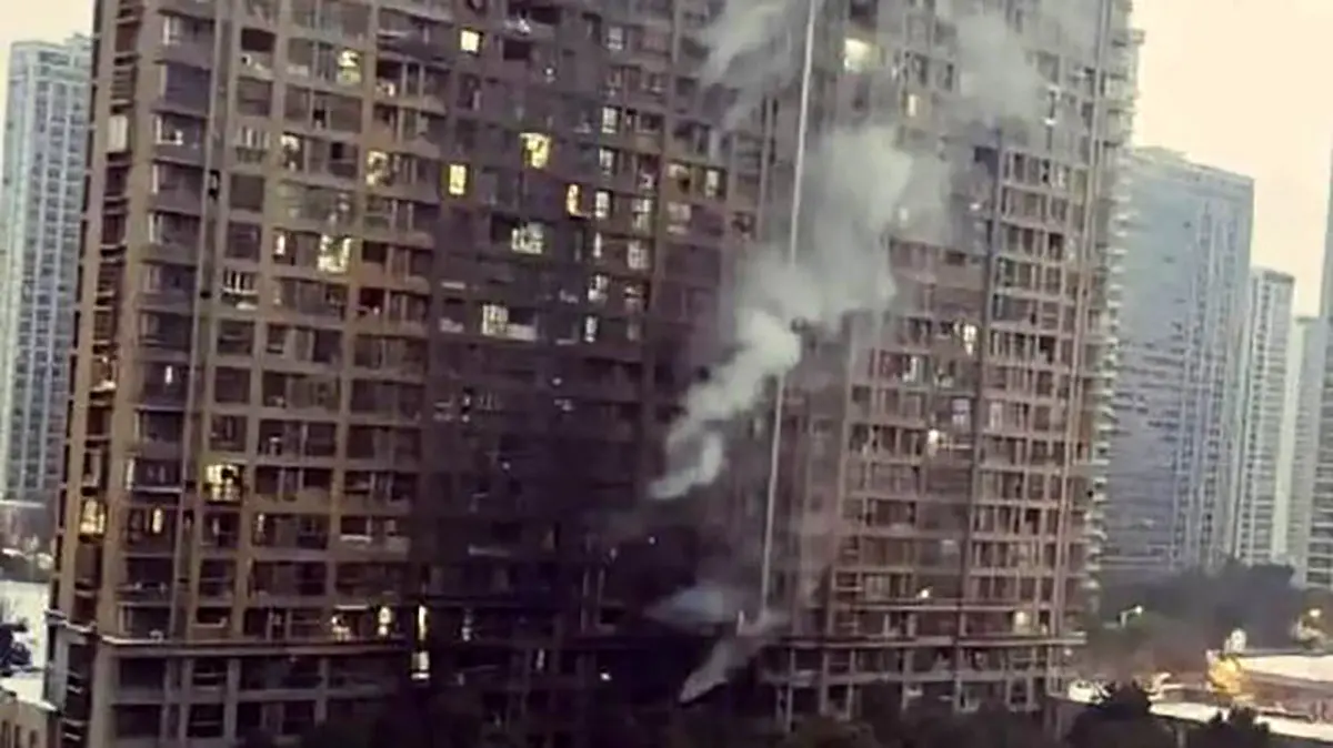 تصاویر منتشر شده در شبکه های اجتماعی چین نشان می دهد که یک آسمان خراش در نیمه های شب آتش گرفته و دود سیاهی از آن پراکنده میشود.