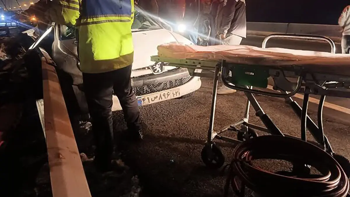تصادف مر گبار پژو 206 با نیسان آبی درجاده قم به تهران