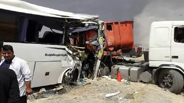 حوادث رکنا: تصادف تریلی و اتوبوس در کمربندی خمینیشهر 17 نفر مصدوم بر جای گذاشت