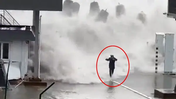 حوادث رکنا: مردی که مشغول فیلم برداری از دریای خروشان بود ناگهان موج عظیم او را با خود برد.