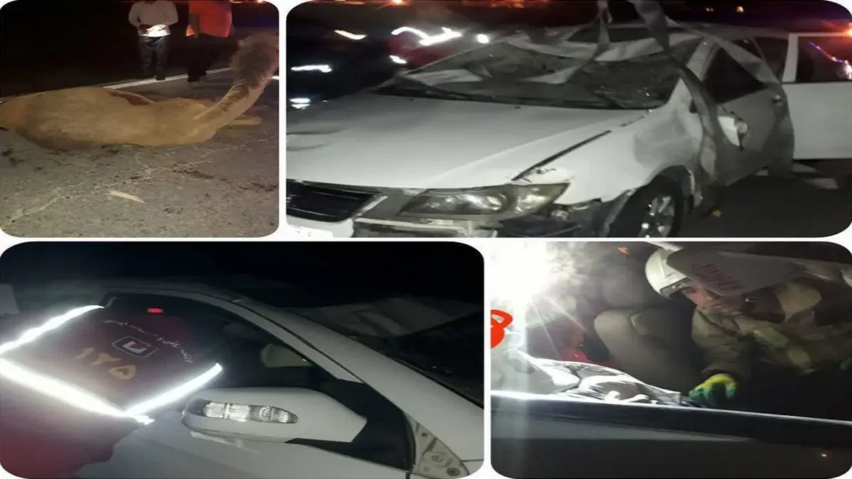 حوادث رکنا: شب گذشته یک دستگاه خودرو در شهرستان طبس با یک شتر برخورد کرد.