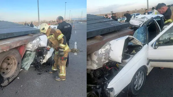 ملکی ادامه داد: بخش زیادی از خودروی پرشیا ( قسمت جلو) به زیر تریلر رفته و راننده در داخل خودرو محبوس شده بود و آتشنشانان ایمن سازی لازم را انجام دادند و راننده خودرو را به بیرون آوردند که به تایید عوامل اورژانس متاسفانه راننده فوت کرده بود و در ساعت 6 و 43 دقیقه عملیات به پایان رسید.