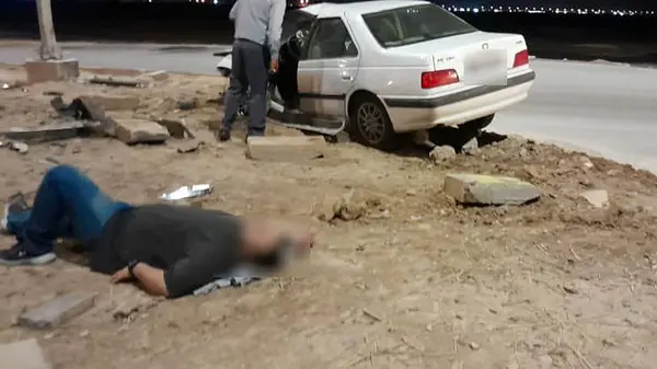 فیلم / تصادف هولناک پژو پارس با فلکه ورودی شهر آبادان / تیم های امدادی وارد عمل شدند