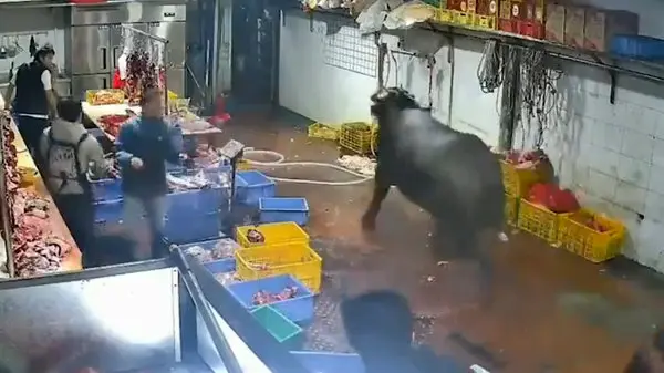 رکنا : ویدیو دوربین مدار بسته کشتار گاه تصاویری از گاو را که تمام تلاش خود را برای زنده مان کرد ثبت کرد .