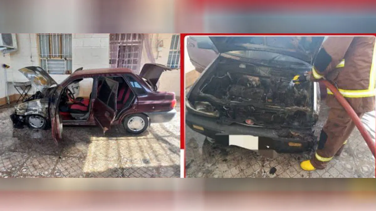 پراید در حیاط منزل مسکونی آتش گرفت + عکس