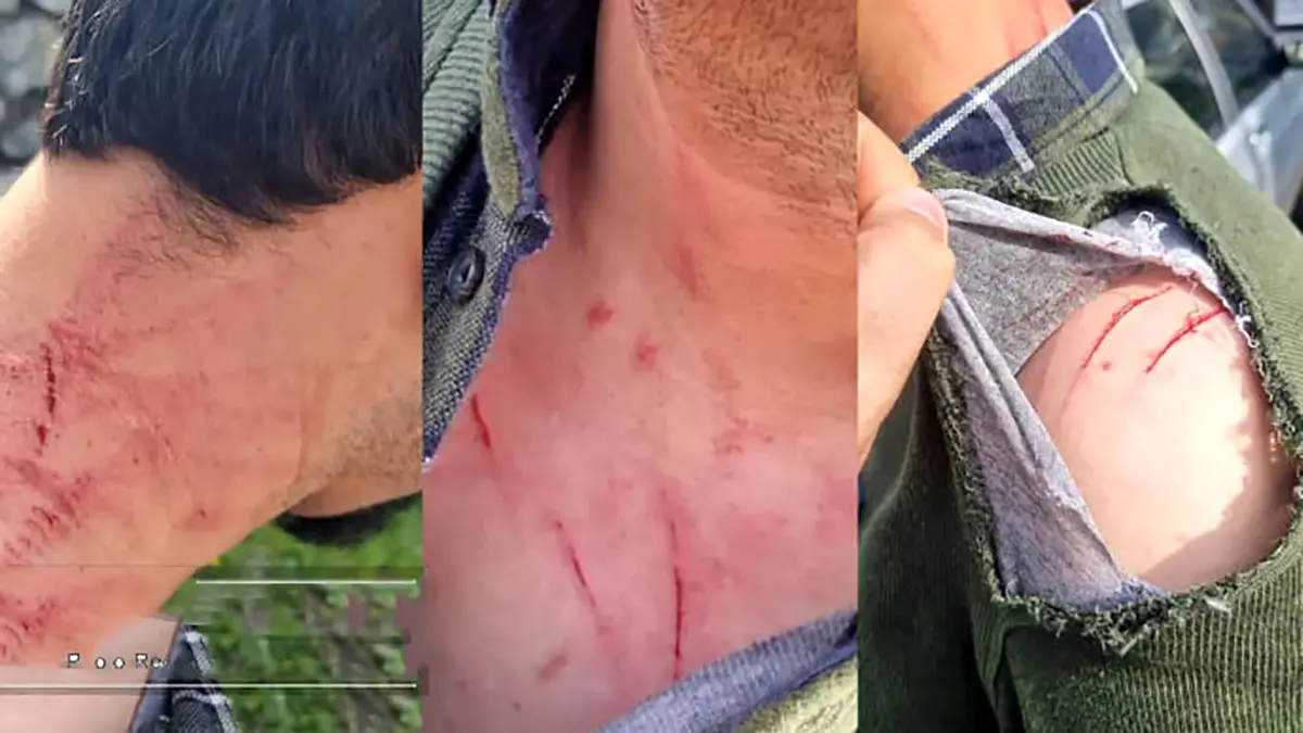ایشان با خود بنده درگیر شده و با اینکه بنده ۲۰ سال از ایشان بزرگتر هستم با مشت به صورت بنده زدند و باعث آسیب دیدگی صورت فک و چشم چپ بنده شده اند.