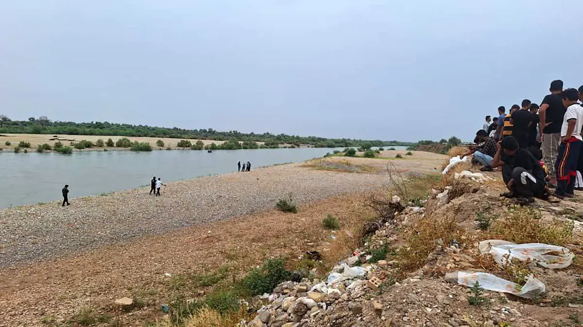 اهالی روستای هدامه و بیت چریم (شهر حر) با پنج قایق و تیوپ درحال جست‌وجوی جسد هستند.