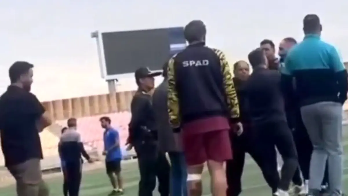 فیلم لحظه سیلی زدن یک مربی تیم فوتبال به صورت مربی تیم مقابل / کنار زمین رخ داد