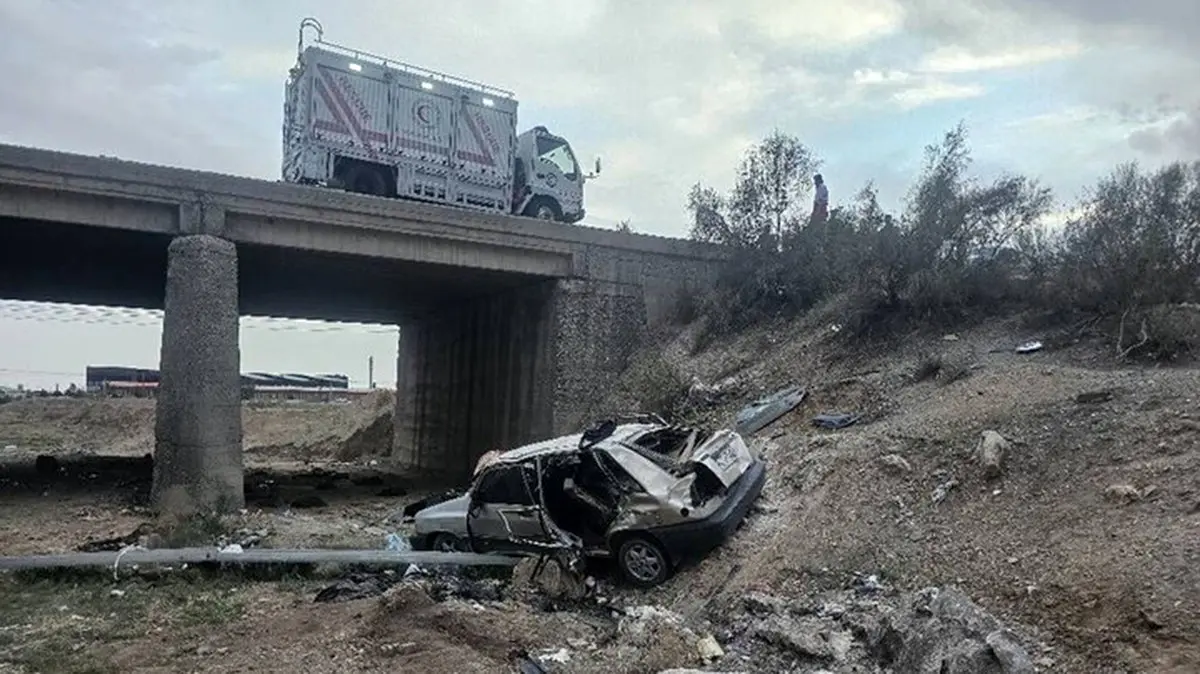 عکس وحشتناک از مچاله شدن پراید در سقوط از پل  !