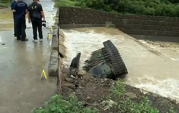 رکنا: افتادن تانک نظامی از روی پل بدنبال بارش سنگین باران در تایوان 3 کشته برجای گذاشت.