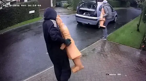 دزدان چشم سفید روز شنبه 24 سپتامبر ساعت 16:15 دو مجسمه عظیم را از مقابل خانه ای واقع در روستایی به نام مین استون در یورکشایر غربی، انگلیس با خودوری سیتروئن دزدیدند. فیلم دوربین مدار بسته نشان می دهد دو مرد دو مجسمه عظیم را که هر کدام به ارزش هزار پوند بودند را به راحت آب خوردن به سرقت بردند. این فیلم تکان دهنده لحظه سرقت این 2 دزد جسور را نشان می دهد که یکی از مجسمه ها داخل صندوق عقب جاساز می شود و مجسمه دیگر در صندلی خودرو قرار داده می شود و دو سارق همراه نفر سومی از محل متواری می شوند. صاحب مجسمه که خواسته نام اش فاش نشود اذعان داشته دو مجسمه به سرقت رفته بخشی از کلکسیون مجسمه های یکسان اش بوده که 12 سال پیش از چین خریداری شده بودند. وی افزود 4 مجسمه مشابه دیگر را در داخل خانه تعبیه شده اند. صاحب مجسمه های به سرقت رفته گفته داستان سرقت را برای هر شخصی تعریف می کند با توجه به سنگینی و عظمت آنها برای شان غیرقابل باور است. سخنگوی پلیس غرب یورکشایر اذعان داشته تحقیق و بررسی ادامه دارد و مشخصات ظاهری سارقان به همراه فیلم دوربین مدار بسته برای یافتن سرنخی از آنها منتشر شده است. برای ورود به کانال تلگرام ما کلیک کنید.