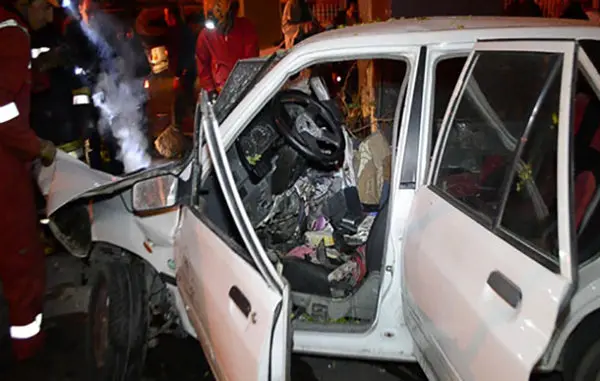 رکنا: برخورد شدید خودرو سواری با گاردریل بزرگراه رسالت و ورود به فضای سبز باعث آتش گرفت خودرو شد.