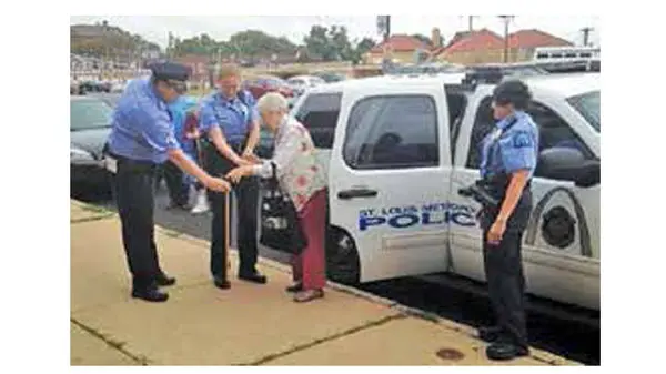 زن 102 ساله سرانجام با هماهنگی پلیس دستگیرشد و دستبند به دست به اداره پلیس سنت لوئیس، درایالت میسوری انتقال یافت و در سلول انفرادی ساعتی ماند.