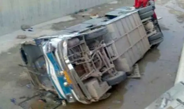 سرهنگ جابر پاپری رییس پلیس راه بوشهر گفت: اتوبوس حامل کارگران پتروشیمی بوشهر ساعت 18و 30 دقیقه براثر برخورد با گارد ریل در مسیر عسلویه - بیدخون واژگون شد.
