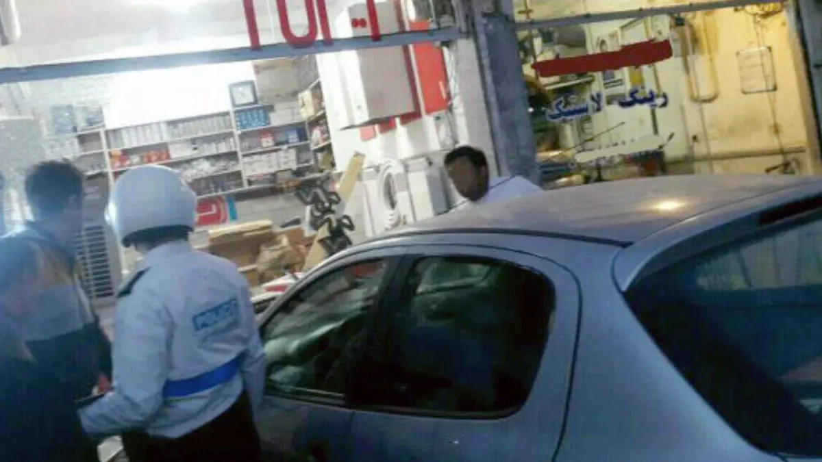 پژو 206 وارد مغازه لوازم خانگی شد+تصاویر