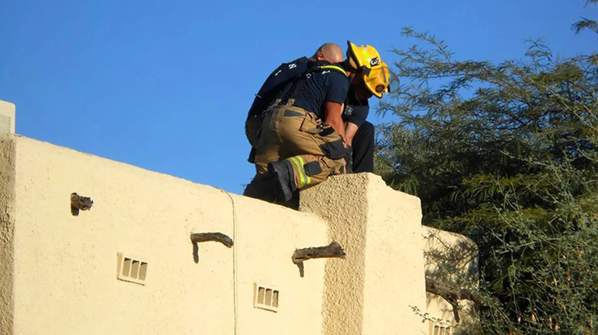 آتش نشانان آریزونای آمریکا مردی را که داخل دودکش گیر کرده بود نجات دادند. این اتفاق زمانی افتاد که این مرد 26 ساله قصد داشت تا از طریق دودکش وارد خانه اش شود. همسایه وی بعد از شنیدن فریادهای این مرد با آتش نشانی منطقه تماس گرفت و ماموران آتش نشانی بلافاصله در محل حاضر شدند و با کمک طناب توانستند این مرد را نجات دهند.