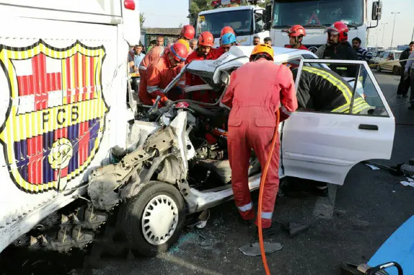 فیلم / برخورد مرگبار پراید با اتوبوس پارک شده در حاشیه جاده مشهد / 2 تن کشته و 2 تن مجروح شدند+ تصاویر