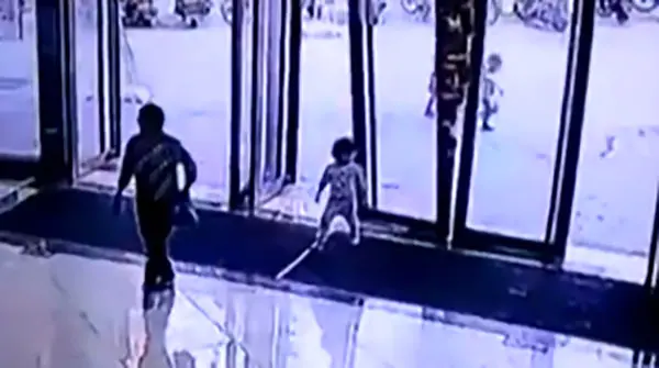 رکنا: فیلمی که توسط دوربین های مداربسته ضبط شده است لحظهی دردناک سقوط درب روی یک کودک چینی را نشان می دهد.