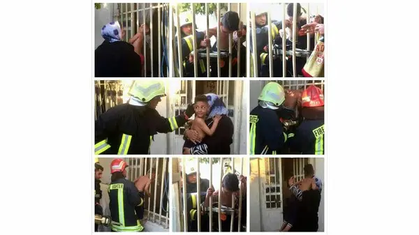 سر کودک بازیگوش شیرازی از میان نرده ها آزاد شد +تصاویر
