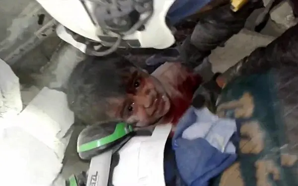 تلاش 4 ساعته برای بیرون کشیدن یک پسر بچه از زیر آوار +عکس