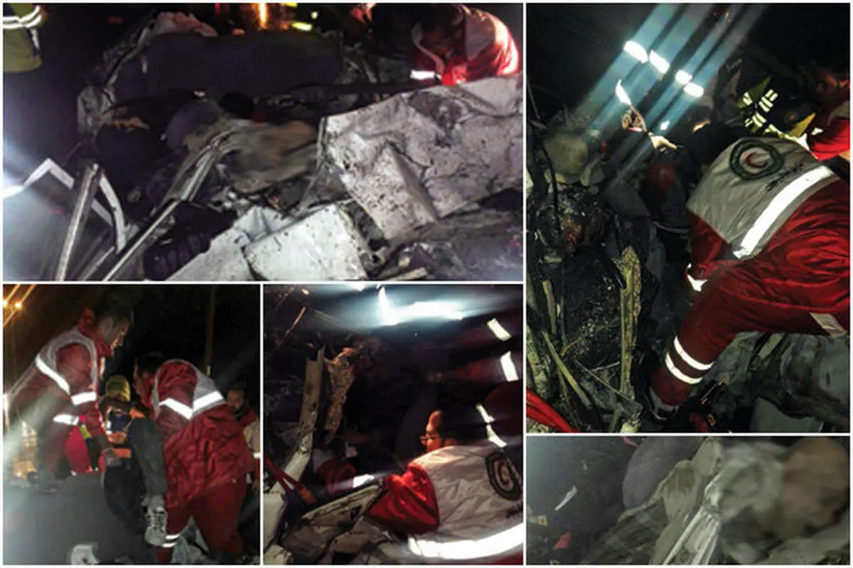 رکنا: تصادف اتوبوس با کامیون و پراید در بزرگراه کرج- قزوین 6 مسافر را به کام مرگ فرو برد.