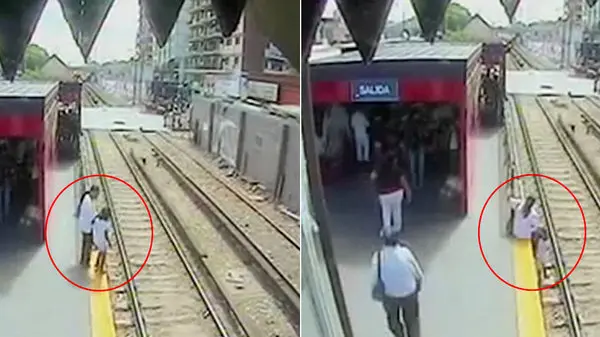 مادر و دختر بچه آرژانتینی که می خواستند خط قطار خود را عوض کنند، خطرناک ترین راه را برای این کار انتخاب کردند.