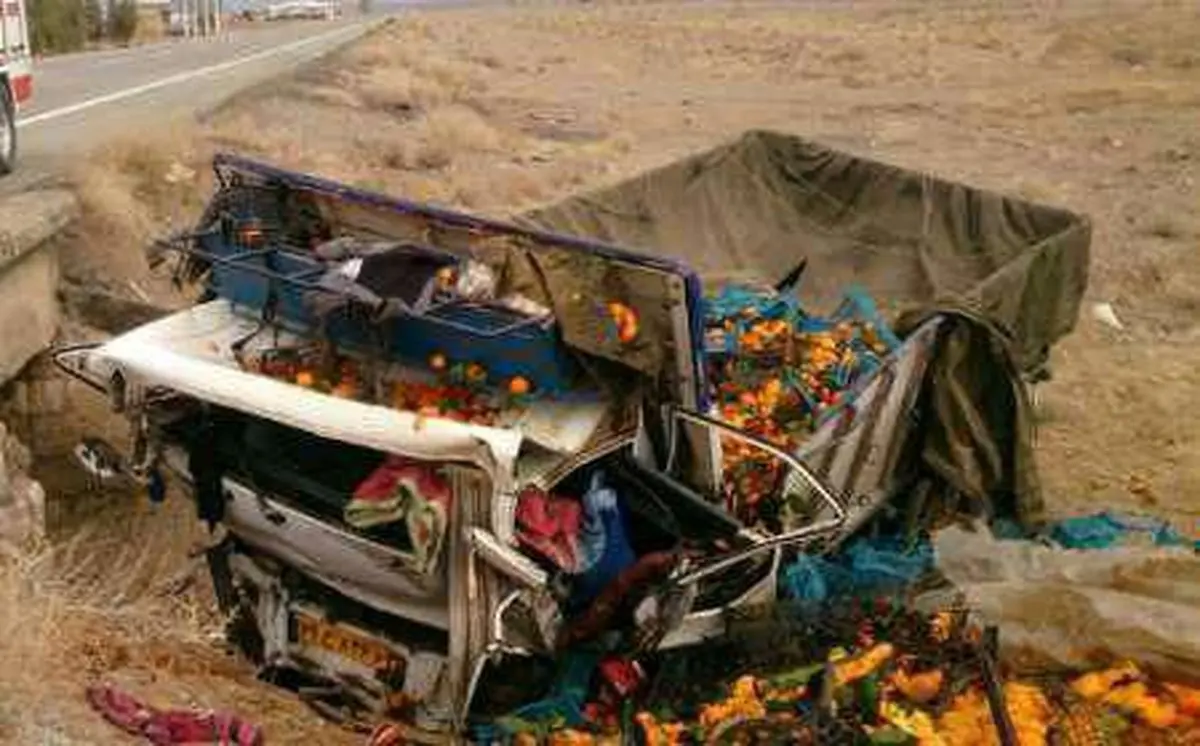 یک دستگاه خودروی وانت پراید و کامیون رنو حامل پرتقال با دیدن این صحنه به منظور کمک رسانی متوقف می شوند که در این حین یک دستگاه کامیون کشنده سر رسیده و با برخورد با کامیون، با پرتقال به روی خودرو وانت پراید می ریزد.