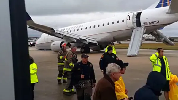 خدمه فرودگاه مجبور شدند تا همه 55 مسافر و خدمه هواپیما را با سرسرههای اضطراری از این هواپیما تخلیه کنند.