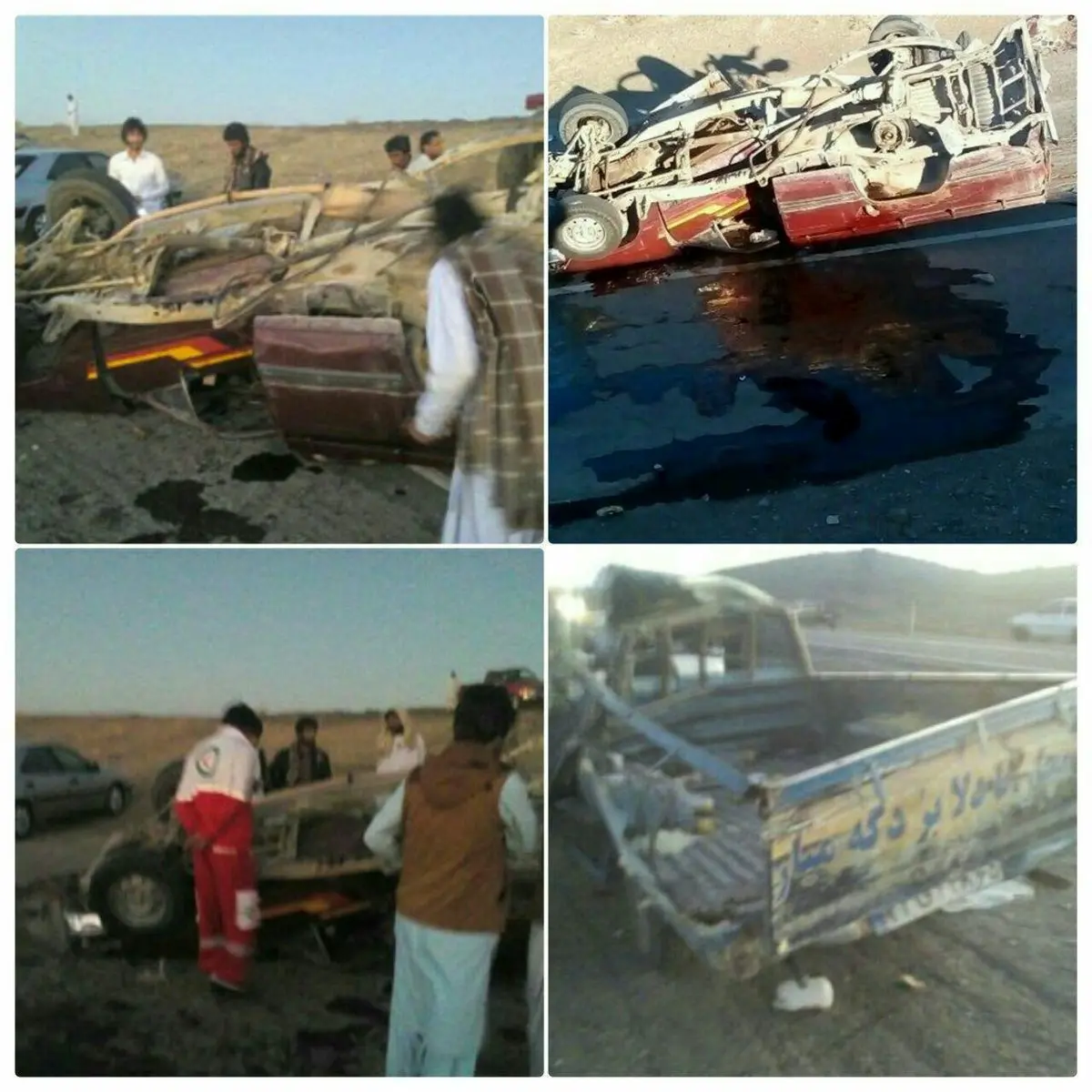 عکس های تصادف وحشتناک 2 تویوتا وانت در جاده خاش / 9 کشته 21 زخمی