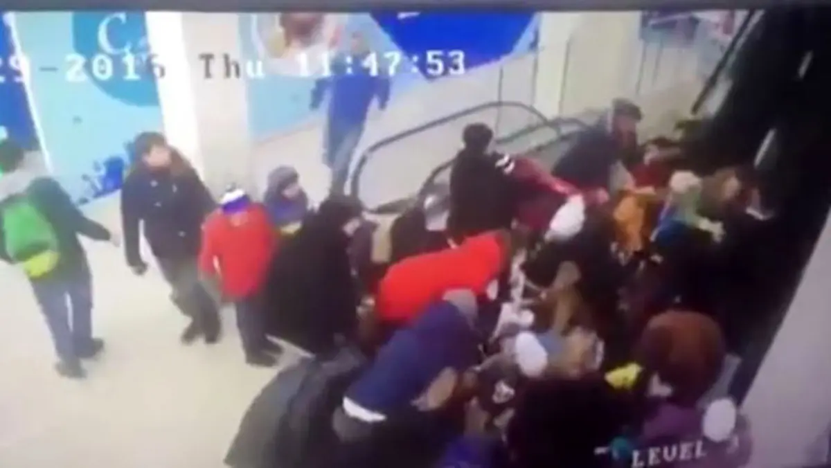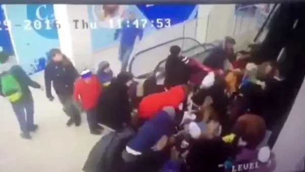 سقوط وحشتناک 44 دانش آموز از پله برقی سینما +فیلم