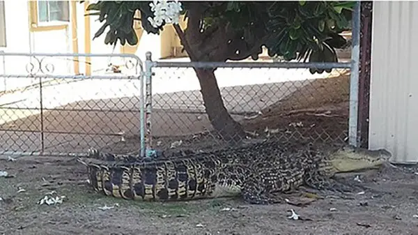 یک کروکودیل 3 و نیم متری در شب سال نو به حیاط پشتی یکی از خانه‌های کویینزلند استرالیا آمده بود و برای استراحت کردن آنجا را انتخاب کرده بود.